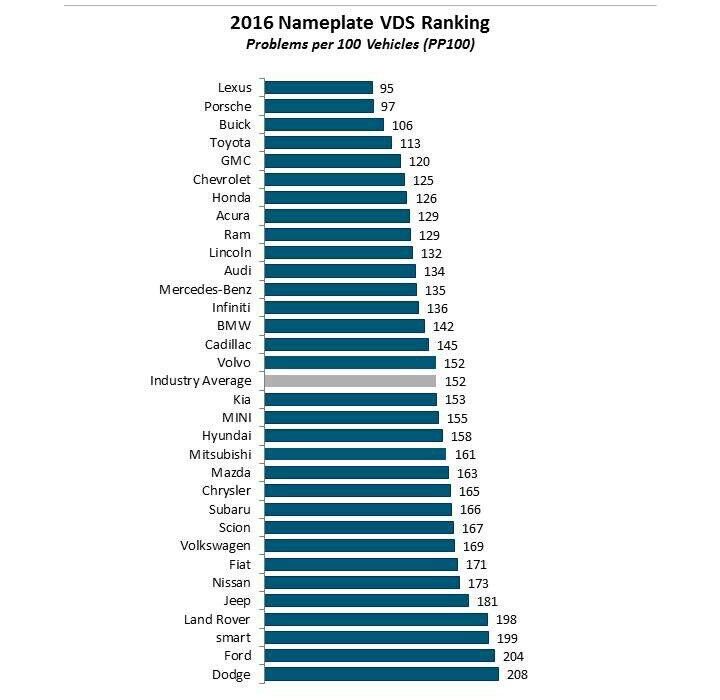 و في تقرير عام 2013 عن عدد الأعطال بكل 100 سيارة. كل ما تأخر الترتيب كان أفضل.. لكزس الأولى وتويوتا الرابعة وفي 6 شركات يابانية في أول 10 شركات. كيا وهيونداي احتلوا المركز 22 و 23.