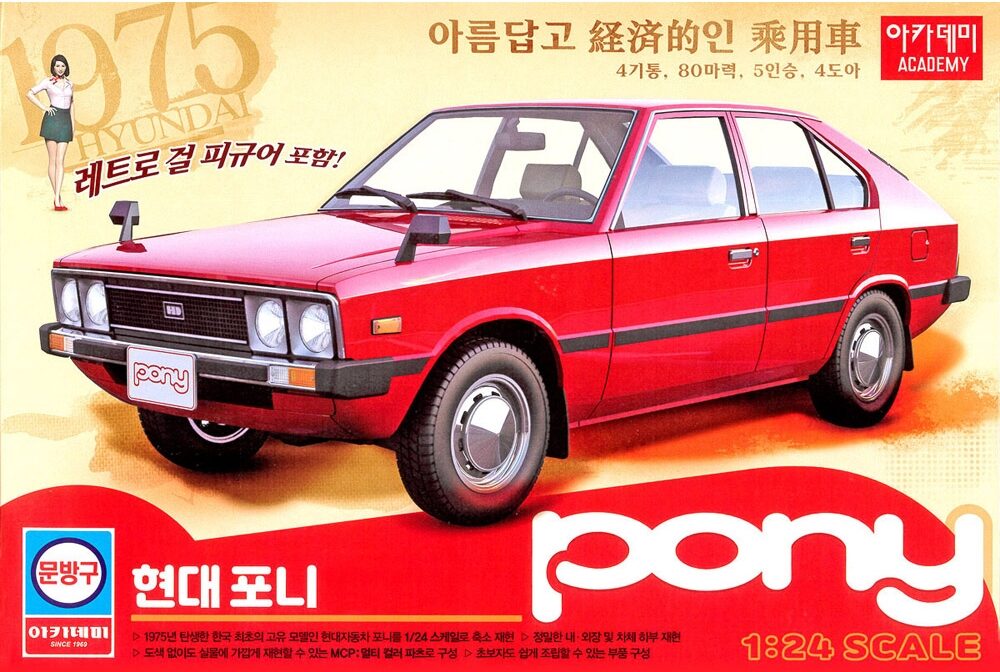 وفي عام 1975، كانت صناعة أول سيارة كورية على شكل واسع وكانت شركة هيونداي بوني، ويمكن لازم تسمى سيارة الأمم المتحدة. حيث كانت المساعدة المالية من بنك فرنسي، طريقة التصنيع والتركيب كانت مع بريطانيا، التصميم كان من شركة إيطالية و المحرك والجير كانوا من ميتسوبيشي اليابانية.